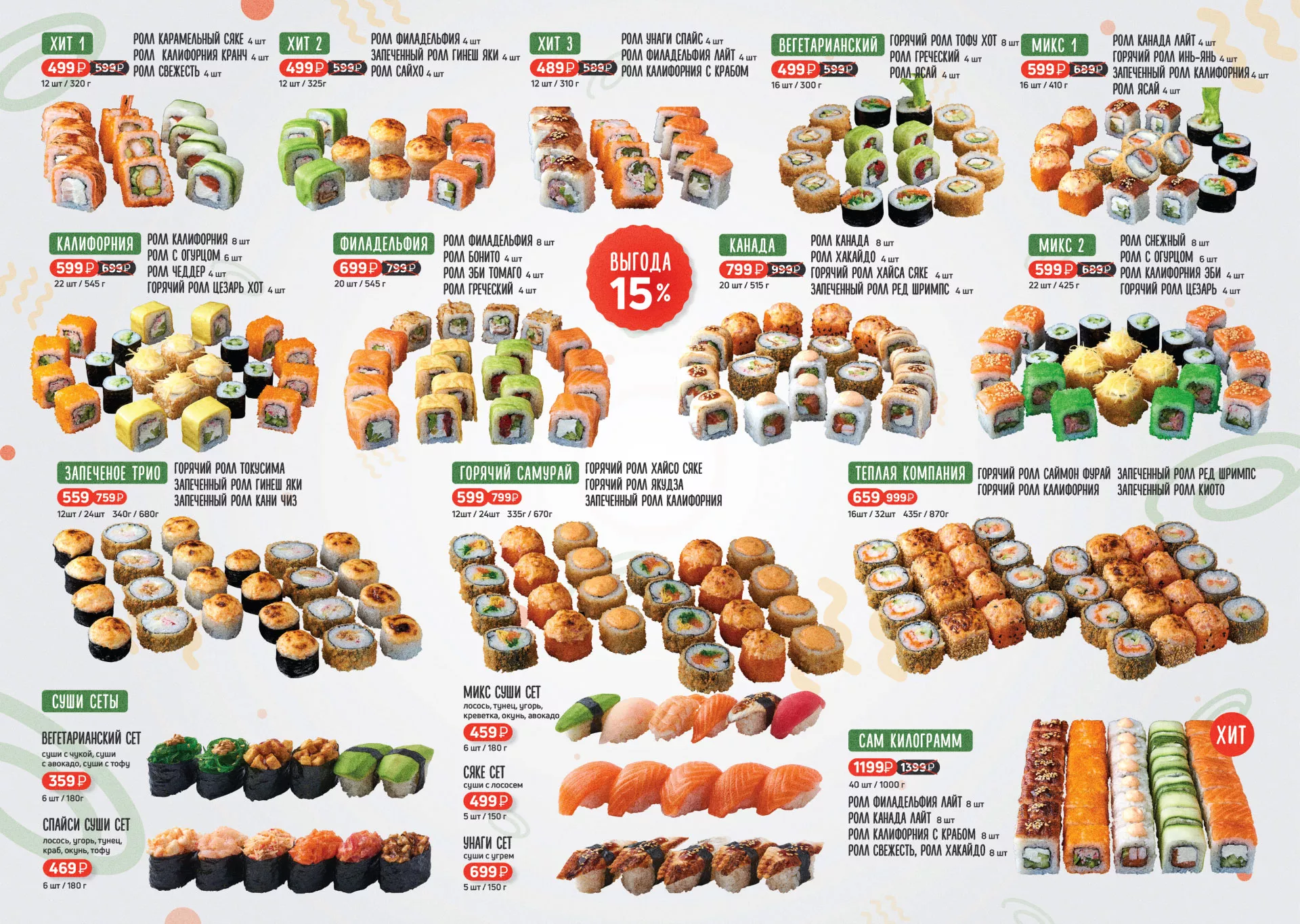 Оформление меню суши-бара «Roll Wok Club» в Зверево
